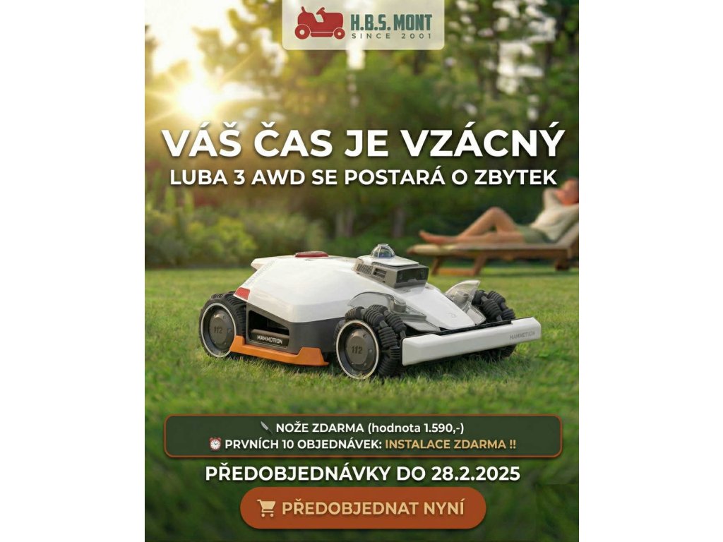Robotická sekačka Mammotion LUBA 3 AWD 3000 + sada nožů v hodnotě 1599,- | instalace u vás na zahradě v hodnotě 5990,-