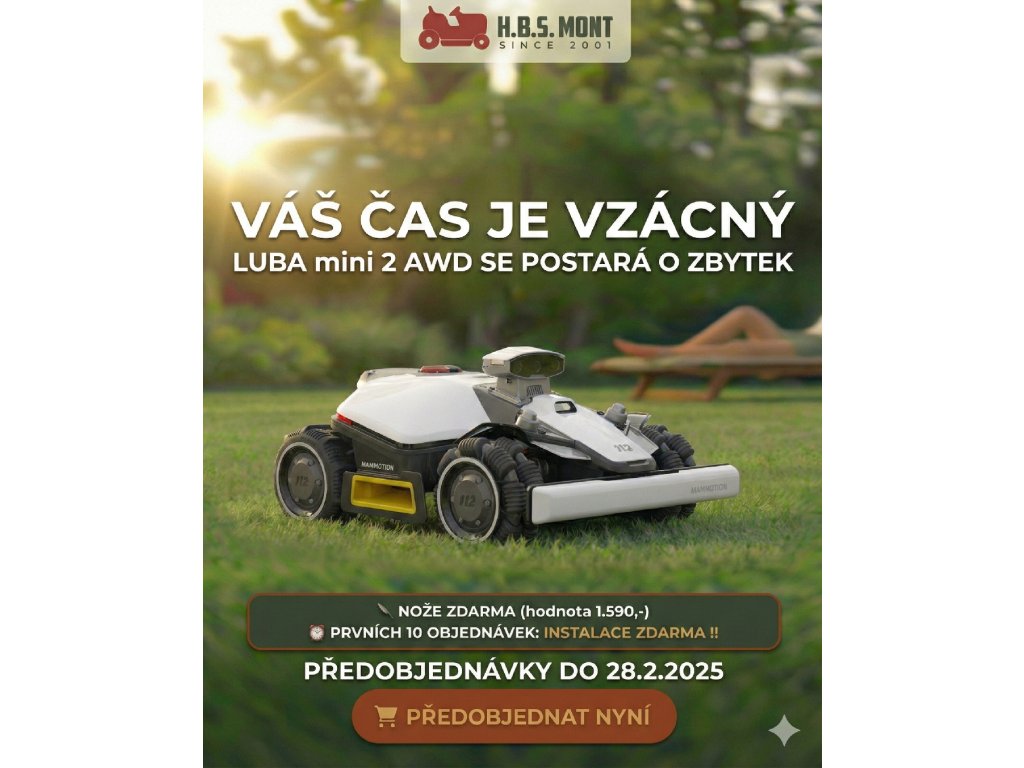 Robotická sekačka Mammotion LUBA mini 2 AWD 1000 + sada nožů v hodnotě 1599,- | instalace u vás na zahradě v hodnotě 5990,-