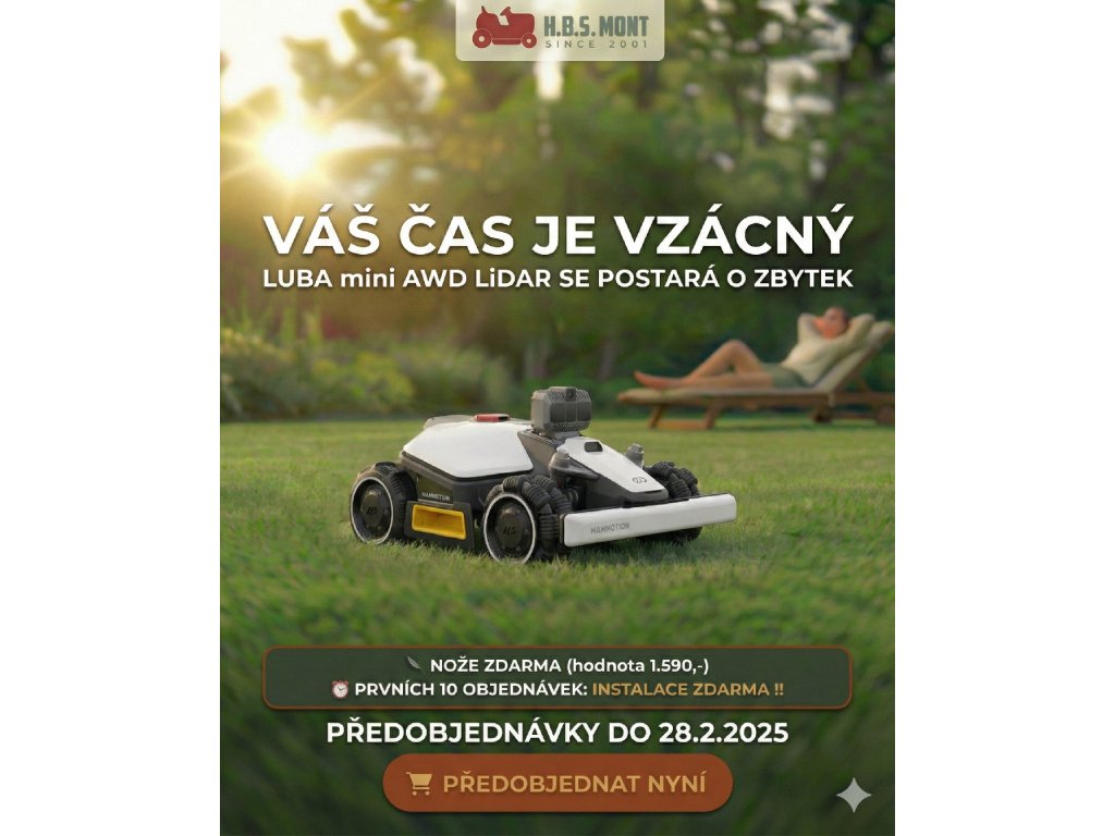 Robotická sekačka Mammotion LUBA mini AWD LiDAR 1500 + sada nožů v hodnotě 1599,- | instalace u vás na zahradě v hodnotě 5990,-